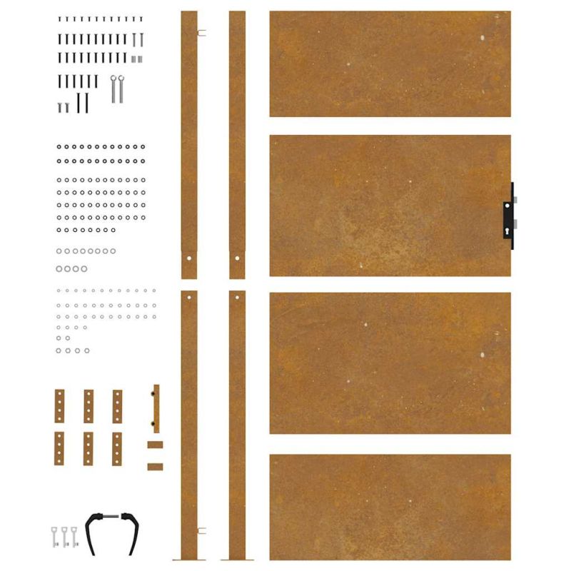 Тази градинска порта, отличаваща се с перфектна комбинация от здравина и елегантност, е идеална врата за оградата около вашата градина или вътрешен двор. Издръжлив материал: Металната врата е изработена от кортенова стомана. Кортенова стомана, известна също като патинираща стомана. Тя е антикорозионна по своята същност. Развива ръждив защитен слой срещу корозия при първото излагане на атмосферни условия. Следователно не е необходимо да я боядисвате. Това може да ви помогне да спестите разходи за поддръжка и ремонт. Отличителният кафяв цвят на кортеновата стомана със сигурност ще привлече вниманието. И накрая, патиниращата стомана е изключително издръжлива и ще издържи изпитанието на времето.Заключваща се система: Стоманената порта е оборудвана със заключваща се система за допълнителна сигурност.Стабилна основа: 4-те монтажни отвора в основата на стълба на портата ви позволяват да го фиксирате към земята за допълнителна стабилност. Добре е да се знае:Този продукт трябва да бъде сглобен.Този продукт все още не е ръждясал и когато го получите ще има нормален метален цвят, но ръждата ще се появи с течение на времето. Можете да ускорите процеса на ръждясване, като го напръскате със сапунена и солена вода. За да запазите дрехите си от петна, избягвайте контакт с образуващия се слой ръжда.