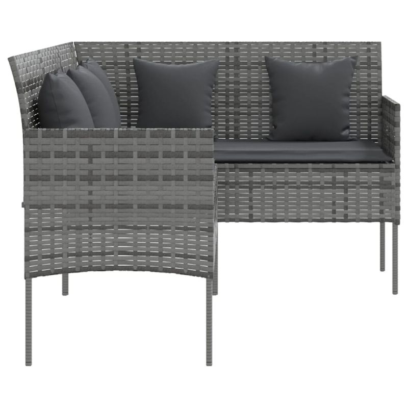 Това стилно и комфортно Г-образно канапе е идеален избор, позволяващ ви да се отпуснете и да се насладите на времето, да подремнете или побъбрите със семейството или приятелите си. Конструиран със здрава стоманена рамка с прахово покритие, този градински диван е стабилен и издръжлив. Благодарение на устойчивия на атмосферни влияния PE ратан, диванът за вътрешен двор е лесен за почистване и подходящ за ежедневна употреба. Освен това този диван за открито може да се мести лесно, за да се впише към всяка подредба, благодарение на леката си конструкция. Дебело подплатените възглавници също така осигуряват допълнителен комфорт. Забележка: За да удължите живота на вашите градински мебели, препоръчваме ви да ги почиствате редовно и да не ги оставяте ненужно на открито без защита.Почистване: Използвайте мек сапунен разтвор.Съхранение: Ако е възможно, съхранявайте на хладно и сухо място на закрито. Ако продуктът се съхранява на открито, защитете го с водоустойчиво покривало. Избършете и изсушете излишната вода или сняг от плоските повърхности след дъжд или снеговалеж. Осигурете достатъчно циркулация на въздух, за да избегнете повреди, свързани с влагата.