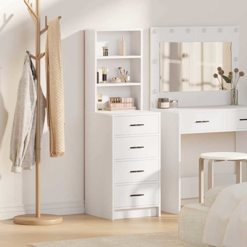 Висок шкаф с чекмедже Бяло 40 x 41 x 135 см Инженерно дърво
