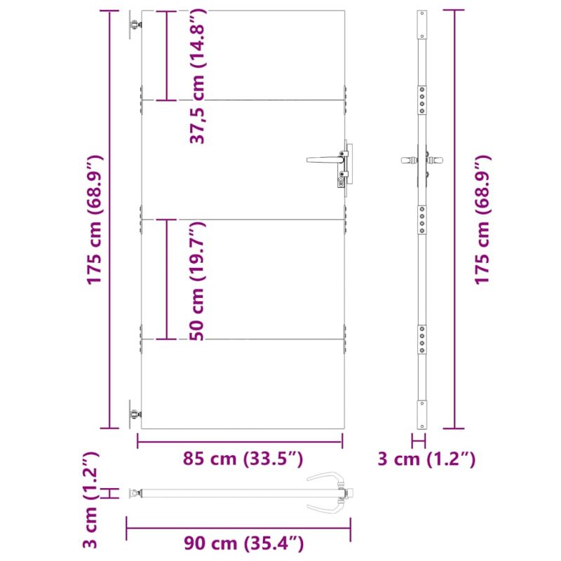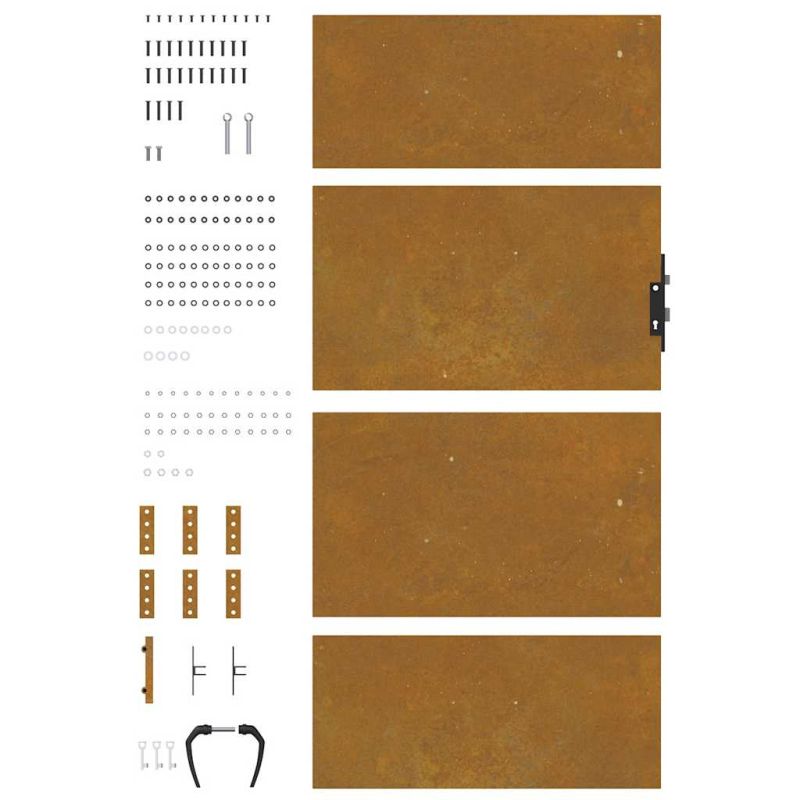 Тази градинска порта, отличаваща се с перфектна комбинация от здравина и елегантност, е идеална врата за оградата около вашата градина или вътрешен двор. Издръжлив материал: Металната врата е изработена от кортенова стомана. Кортенова стомана, известна също като патинираща стомана. Тя е антикорозионна по своята същност. Развива ръждив защитен слой срещу корозия при първото излагане на атмосферни условия. Следователно не е необходимо да я боядисвате. Това може да ви помогне да спестите разходи за поддръжка и ремонт. Отличителният кафяв цвят на кортеновата стомана със сигурност ще привлече вниманието. И накрая, патиниращата стомана е изключително издръжлива и ще издържи изпитанието на времето. Дизайн за пълна поверителност: Плътната странична врата позволява по-добра защита на вашата поверителност, като същевременно изглежда стилно.Заключваща се система: Стоманената порта е оборудвана със заключваща се система за допълнителна сигурност. Добре е да се знае:Този продукт трябва да бъде сглобен.Този продукт все още не е ръждясал и когато го получите ще има нормален метален цвят, но ръждата ще се появи с течение на времето. Можете да ускорите процеса на ръждясване, като го напръскате със сапунена и солена вода. За да запазите дрехите си от петна, избягвайте контакт с образуващия се слой ръжда. Не използвайте този артикул, ако някой от компонентите е счупен, скъсан или липсва.