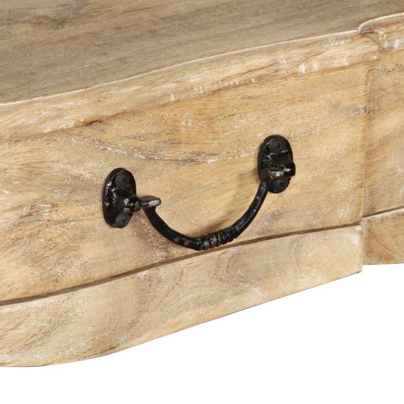 Тази рустик дървена конзолна маса е решението, ако търсите мебел в провинциален френски стил. Страничната маса е изработена от мангово дърво, което е твърдо, стабилно, издръжливо и красиво, а майсторската изработката завършва впечатляващия ретро стил. Манговото дърво е обработено по впечатляващ начин, за да бъде по-устойчиво на износване, като същевременно запазва естествения си чар. Извитите линии излъчват елегантност и подчертават изисканата изработка. Конзолната маса има 3 чекмеджета, които осигуряват пространство за организиране на по-важни неща, а здравият плот е идеален за поставяне на декоративни елементи, като вази, фотоалбуми, кошници за плодове и т.н. Тази конзолна маса осигурява идеално решение за съхранение, придавайки същевременно елегантен акцент. Тя има класически дизайн, който винаги ще бъде актуален и ще се впише почти във всеки интериор. Ще бъдете впечатлени от изтънчения ѝ вид.