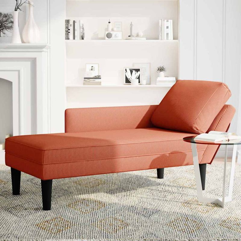 Шезлонг с възглавница, Червен оранжев, велурена материя