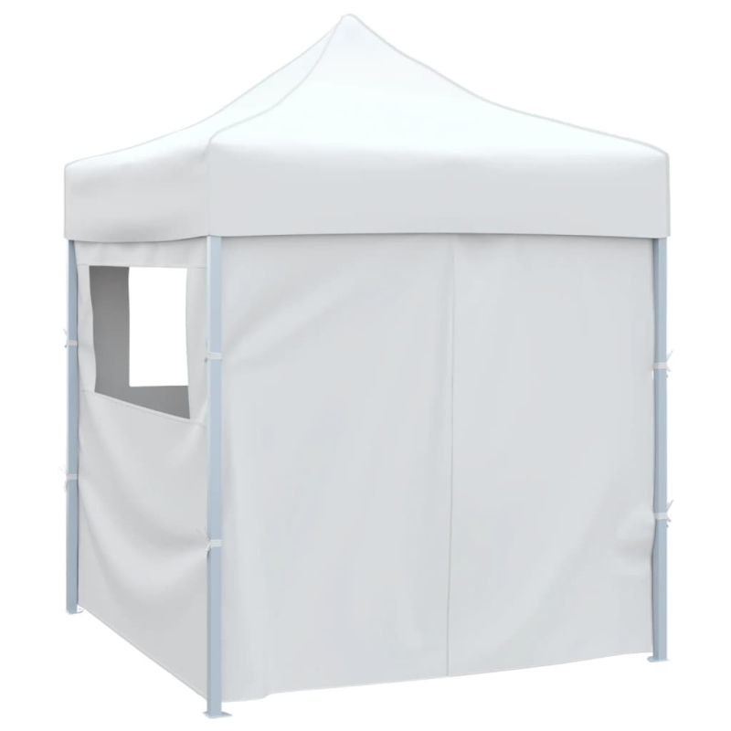 Сгъваема парти шатра с 4 странични стени 2x2 м стомана бяла