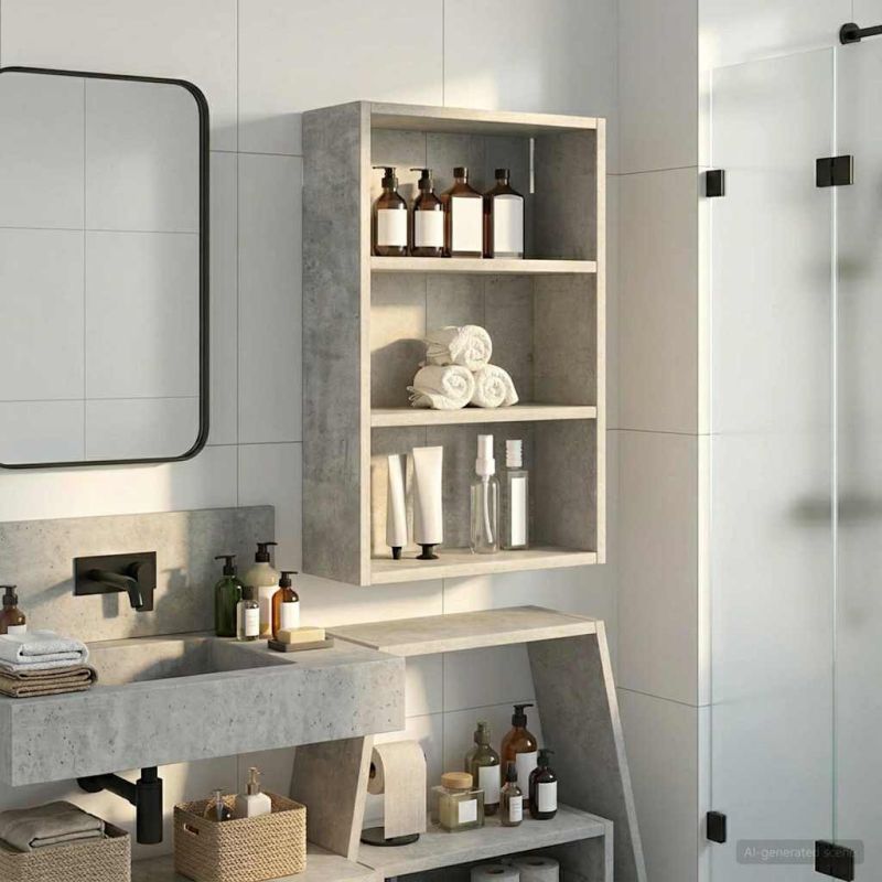 Банен стенен шкаф с рафт Бетонно Сиво 40 x 16 x 62,5 см