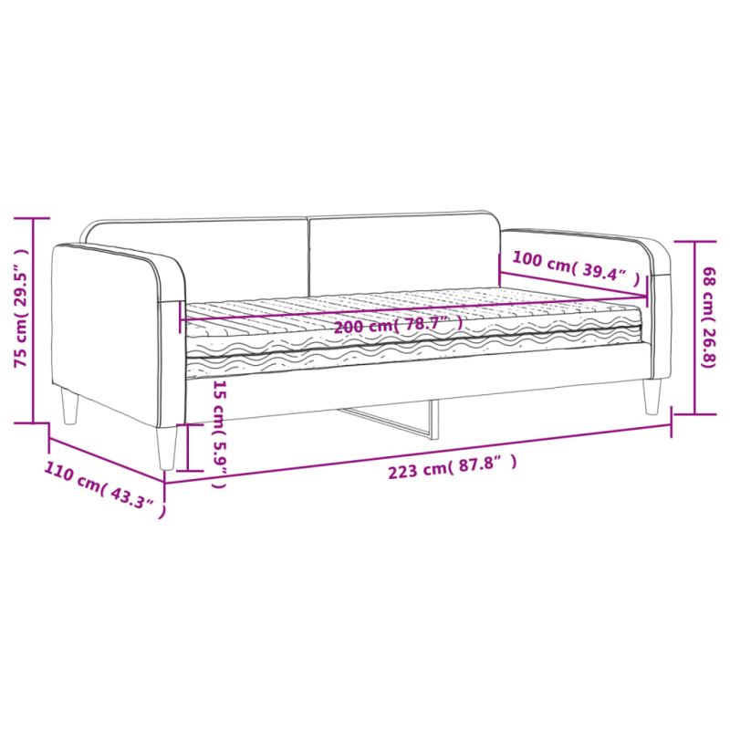 Канапе с матрак, таупе, 100x200 см, плат