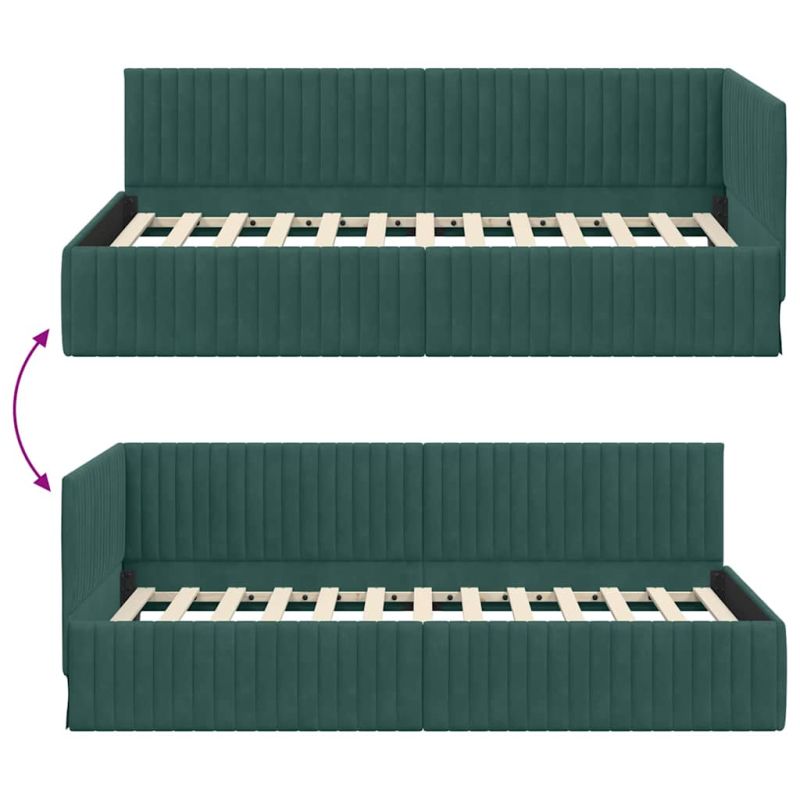 Ъглова рамка за легло Тъмен зелен 100 см x 200 см Кадифе