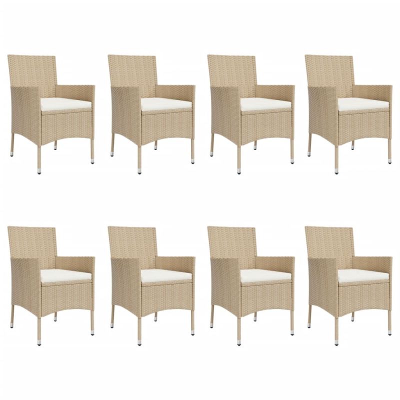 Градински комплект с възглавници, 9 части, бежов полиратан