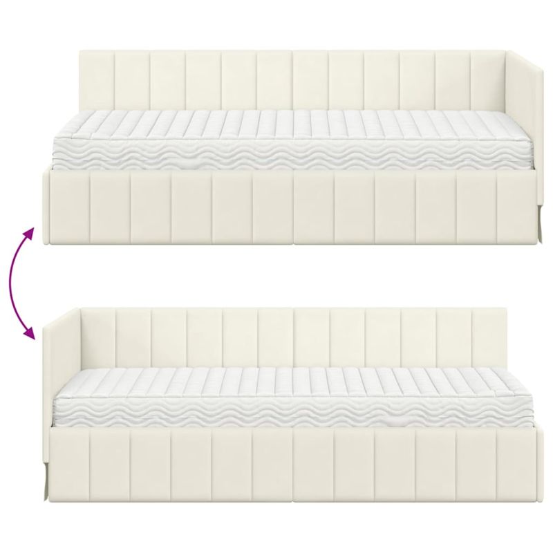 Ъглова рамка за легло с матрак с таблото 2 pcs Крем Кадифе