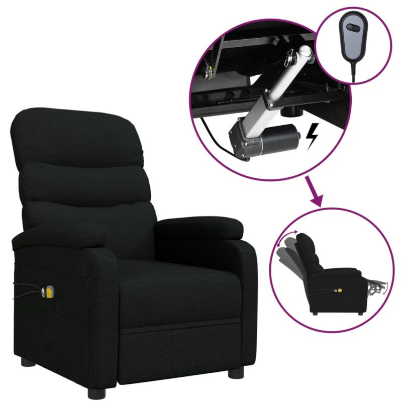 Електрически масажен стол, черен, текстил