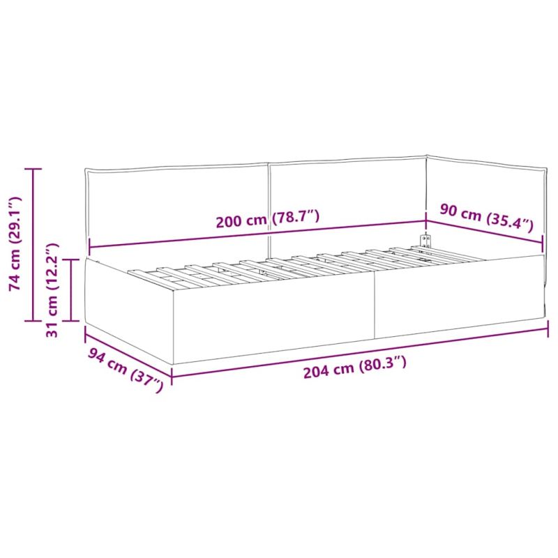 Ъглова рамка за легло с таблото Таупе 90 x 200 cm текстил