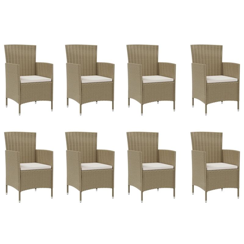 Градински комплект с възглавници, 9 части, полиратан, бежов