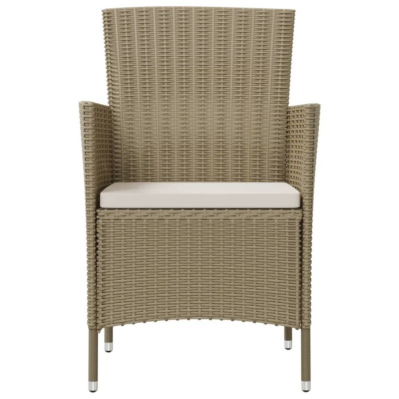 Със стилен дизайн и издръжлива стоманена рамка, този комплект трапезни мебели е перфектен избор за вашето външно жилищно пространство. Този градински трапезен комплект разполага с прахово боядисана стоманена рамка, която прави масата и столовете стабилни и издръжливи. Благодарение на устойчивия на атмосферни влияния PE ратан, комплектът мебели за открито се почиства лесно. Възглавниците са подвижни и лесни за почистване. В допълнение, плътните възглавници добавят допълнителен комфорт при седене. Забележка: За да удължите живота на вашите градински мебели, ви препоръчваме да ги защитите с водоустойчиво покритие. Максимално 110 кг на седалка. Съобразете се с риска от открит огън и други източници на силна топлина в близост до продукта.