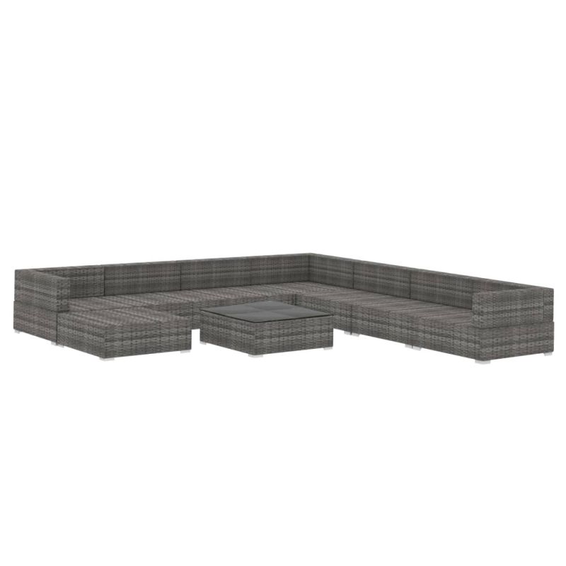 Градински комплект с възглавници, 9 части, полиратан, сив