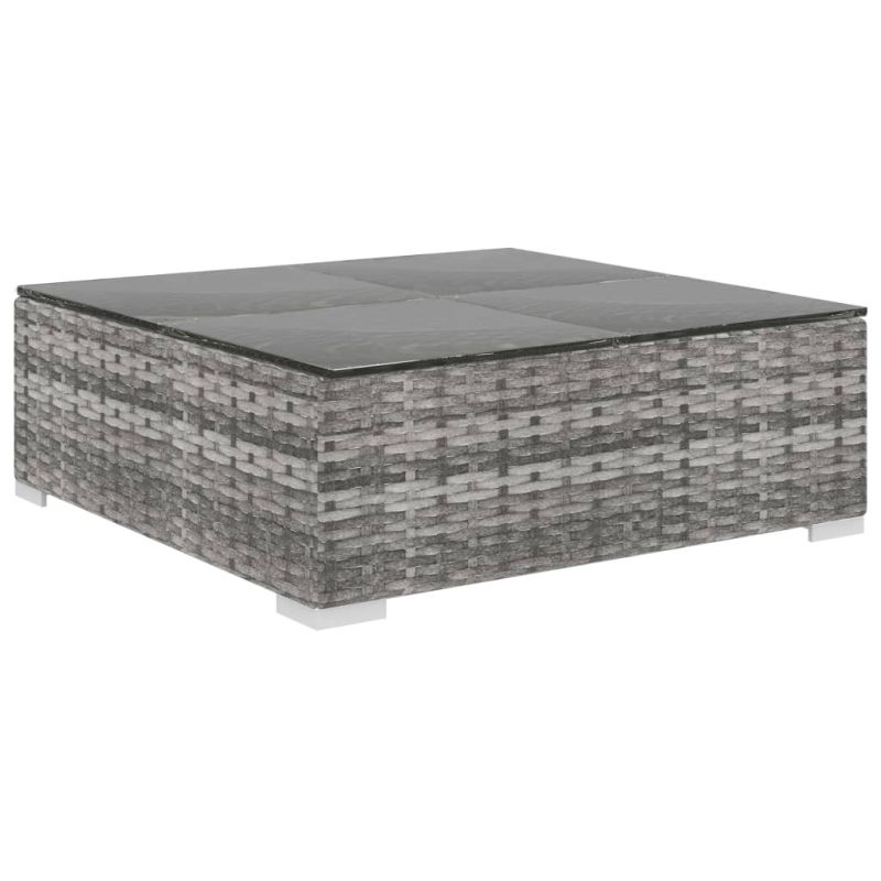 Този ратанов комплект мебели комбинира стил и функционалност и ще се превърне във фокусната точка на вашата градина или двор. Комплектът е проектиран да бъде използван целогодишно навън. Благодарение на устойчивия на атмосферни влияния, непромокаем полиетиленов ратан, диванът се почиства лесно, издръжлив е и подходящ за всекидневна употреба. Комплектът има здрава, прахово боядисана рамка, която е много устойчива. Също така е лек и модулен, което го прави лесен за преместване, за да може да бъде подреден съобразно желанията. Дебелите, подвижни възглавници допринасят за комфорт при седене. Доставката включва 3 ъглови диванни модула, 4 средни диванни модула, 1 табуретка, 1 маса за кафе, 8 възглавници за сядане и 10 възглавници за облягане. Забележка: Препоръчваме покриването на комплекта по време на дъжд, сняг или скреж.