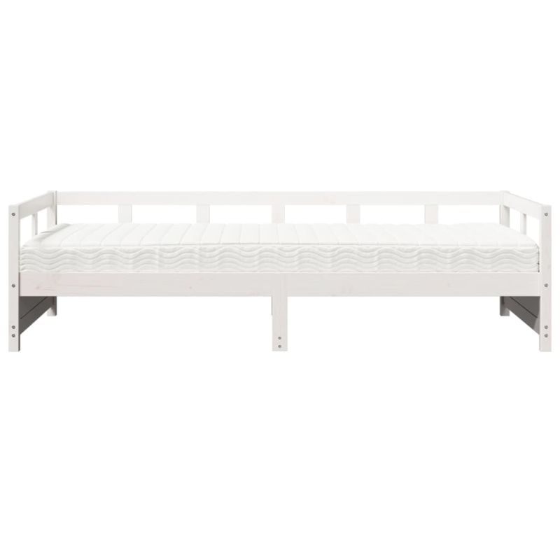 Дневно легло с матрак, бял, 80x200 см, борово дърво масив