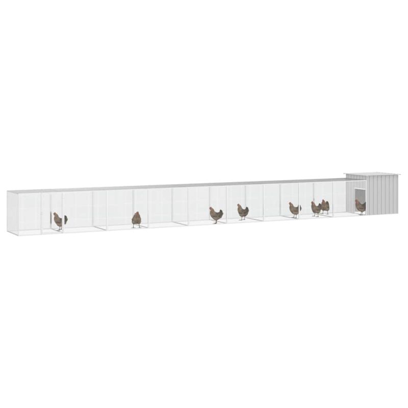 Тази клетка за кокошки от поцинкована стомана може да осигури комфорт и безопасност на вашите кокошки, патици и други малки животни. Всичко в едно място за кокошарник: Кокошарникът предлага множество приложения: почивка, игра, упражнения или просто за безопасност на вашите малки животни. Той ще бъде перфектен рай за вашите кокошки!Здрава конструкция: Благодарение на здравата конструкция от поцинкована стомана, кокошарникът е издръжлив и построен за дълготрайност.Допълнителна сигурност: Вратата с панти и заключваща се система за заключване на кокошарника осигурява допълнителна сигурност и безопасност за вашите животни.Вентилиран дизайн: Кокошарникът е с мрежест дизайн, което го прави добре вентилиран, за да поддържа въздуха свеж и чист. Така че, външният кокошарник е полезен за здравето на вашите малки приятели.Разширение: С включената разширителна клетка можете лесно да създадете просторно жилищно пространство, където вашите домашни любимци да играят и почиват свободно в рамките на границите. Забележка:Всеки продукт се предлага с ръководство за монтаж в кутията за лесно сглобяване.Полезно е да знаете:За да предотвратите повреди от обилно натрупване на сняг, препоръчваме редовно да почиствате покрива през зимата. Предупреждение! Трябва да носите защитни ръкавици. Моля, носете предпазни очила, ръкавици, предпазни обувки и каска (защита на главата), когато монтирате продукта. Не инсталирайте продукта при екстремни метеорологични условия, като силен вятър или ниски температури. Не допускайте деца и домашни любимци в зоната за монтаж. Продуктът трябва да се монтира върху равна повърхност.
