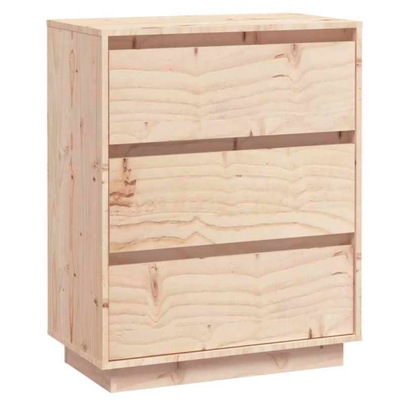 Този дървен бюфет внася нотка на елегантност и изискана визия във вашата всекидневна. Този страничен шкаф е изработен от масивна борова дървесина, което гарантира неговата издръжливост и стабилност. Шкафът с чекмеджета осигурява достатъчно място за съхранение на книги, мултимедийни уреди и други предмети. Стабилният плот е идеален за подреждане на декоративни предмети, фоторамки и саксийни растения.
