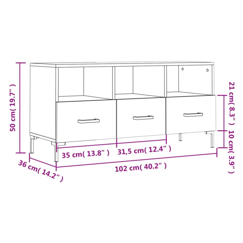 ТB шкаф, кафяв дъб, 102x36x50 см, инженерно дърво