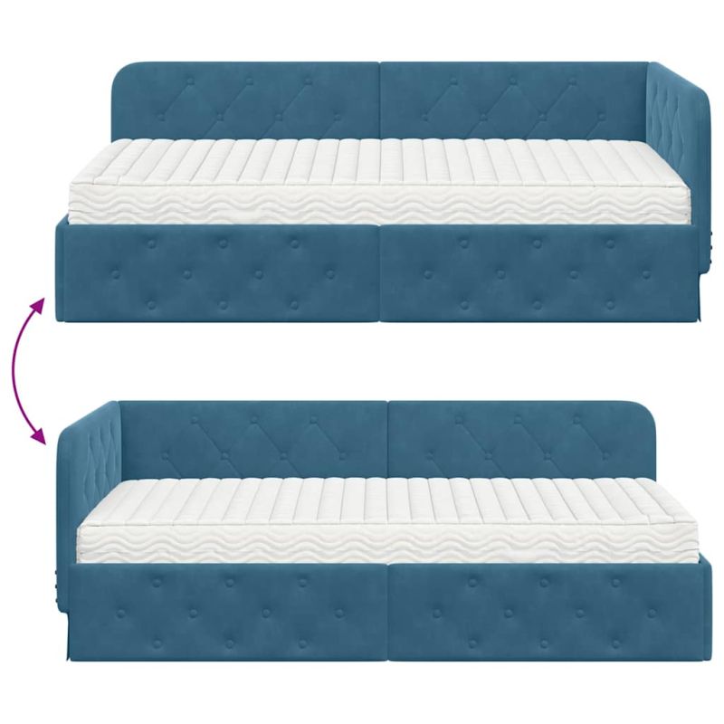 Ъглова рамка за легло Синьо 90 x 190 cm Кадифе