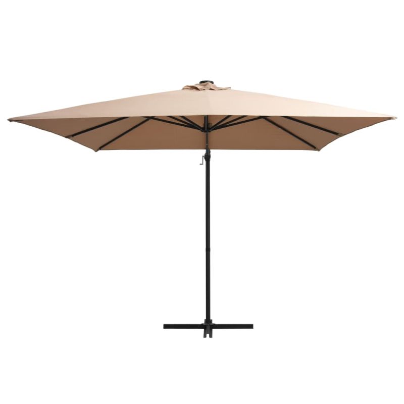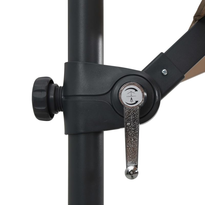 Конзолен градински чадър LED и стоманен стълб 250x250 см таупе