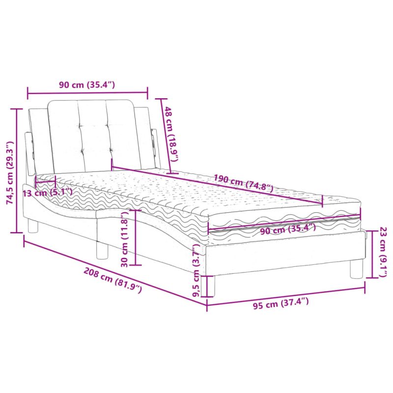 Насладете се на по-спокоен нощен сън с това легло с матрак! То е приветливо допълнение към всяка спалня. Издръжлива изкуствена кожа: Висококачествената изкуствена кожа е изключително издръжлив материал. Устойчива е на петна, което я прави лесна за почистване с влажна кърпа. Гладката повърхност придава луксозен вид и красота на истинската кожа. Шперплатови летви: Шперплатовите летви осигуряват добро разпределение на теглото, като гарантират, че матракът ще остане на мястото си при всяко завъртане на тялото ви по време на сън. Отлична опора: Възглавницата за таблата е пълнена с пяна за ултра мек и оптимален комфорт, осигурявайки ви отлична опора за гърба, докато седите в леглото, за да четете или гледате телевизия. Матрак от пяна: Този 3-слоен текстилен матрак е пълнен с 22D PU пяна за оптимален комфорт. Той помага за облекчаване на умората и насърчава кръвообращението, предлагайки ви пълна релаксация и добро качество на съня. Освен това, матракът се предлага с твърдост H2 и H3, така че можете просто да го завъртите, за да изберете твърдостта, която ви подхожда най-добре. Вълнообразен страничен дизайн: Вълнообразният вид на рамката на леглото е стилен и изискан, добавяйки модерен и елегантен щрих към вашия декор, превръщайки я във фокусна точка на вашата спалня. Полезно е да знаете:Тази рамка за легло е с ламели за основа и включва ламели.
