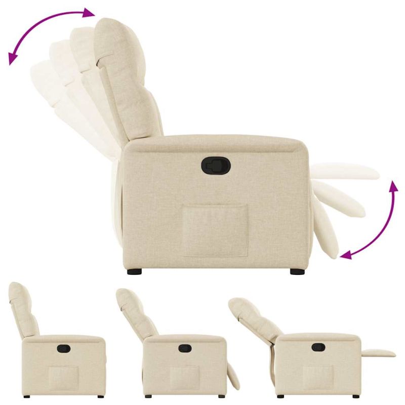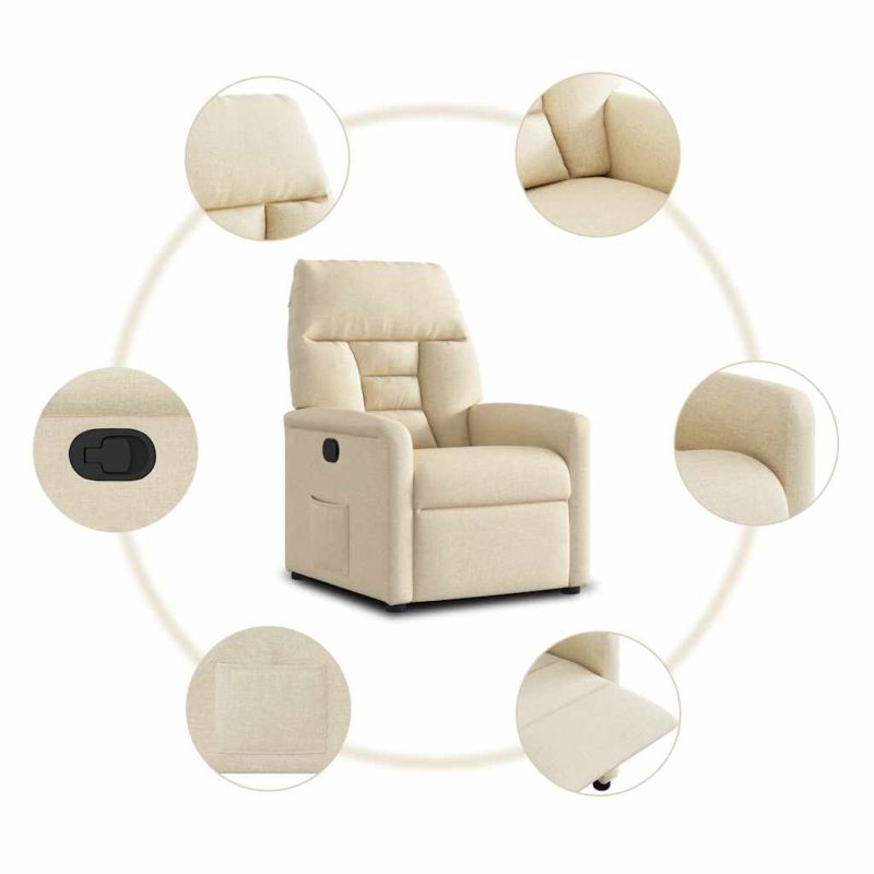 Облегнете се и се отпуснете в този изключително комфортен наклоняем стол! Функция за ръчно накланяне: Този накланящ се стол има дръжка от дясната страна. Можете ръчно да настроите поставката за крака и облегалката до произволна позиция според вашето удобство с просто издърпване на дръжката. Тази функция позволява максимален наклон от 135 градуса. Освен това облегалката може бързо да се върне на първоначалното си място с лесно издърпване на дръжката.Удобно седене: Дебело подплатената седалка, облегалката и широките подлакътници, покрити с текстил, осигуряват уютно и топло усещане, което ви кара да се чувствате като в прегръдка, докато седите. Тъканта се отличава със семпъл и изчистен вид и е дишаща и издръжлива.Здрава и стабилна рамка: Рамката, изработена от дърво и метал, осигурява здрава структура и стабилност. Този накланящ се фотьойл е удобен и издръжлив.