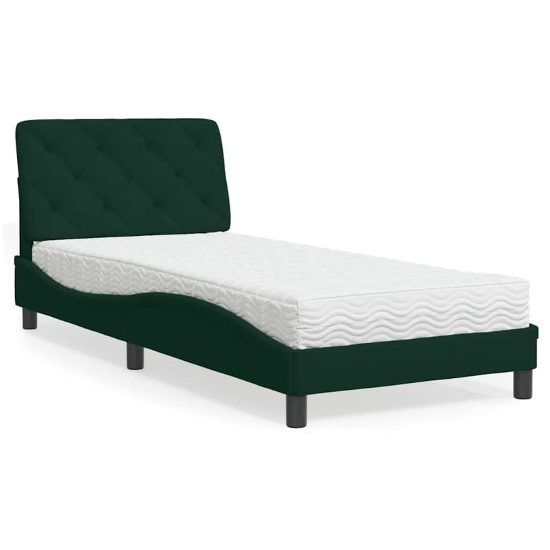 Легло с матрак, тъмнозелено, 80x200 см, кадифе