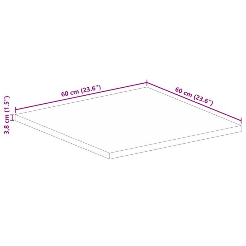 Плот за маса, 60x60x3,8см, квадратен, масивно дърво грубо манго