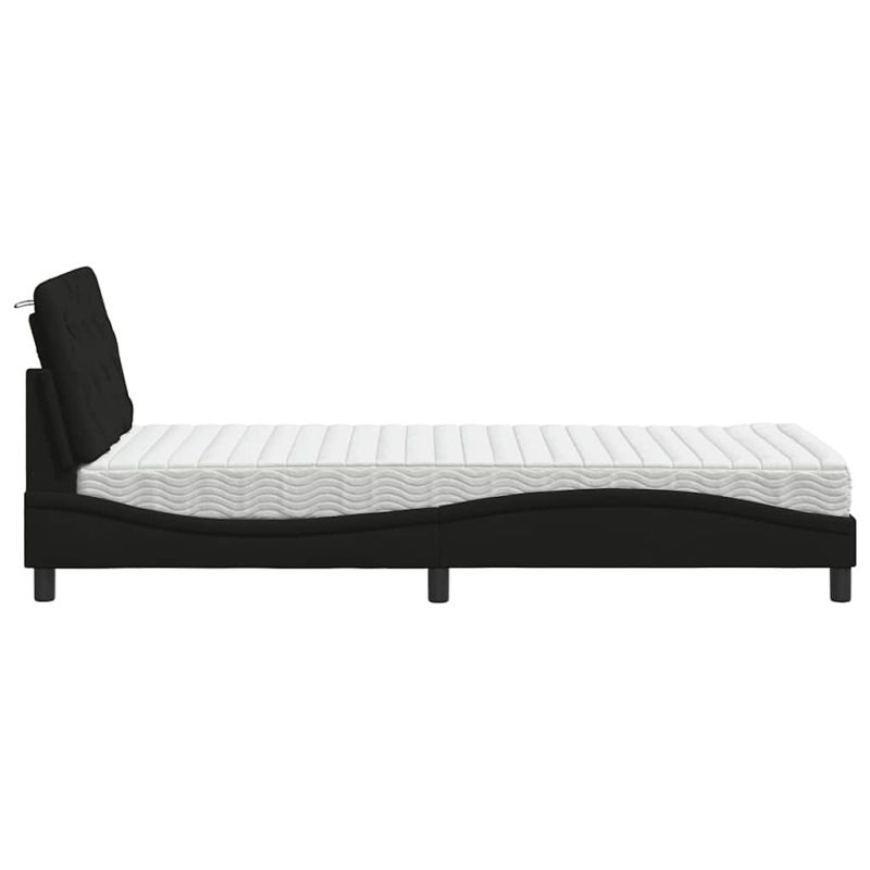 Осигурете си по-добър спокоен нощен сън с това легло с матрак! То представлява приветливо допълнение към всяка спалня. Мек и издръжлив материал: Полиестерната тъкан предлага комбинация от мекота, дишане и издръжливост, гарантирайки ви да изпитате максимален комфорт и уют.Матрак с дунапрен: Този матрак има слоеве от дунапрен, които се прилепват към тялото ви, облекчавайки натиска върху чувствителните зони на сън като врата, раменете, гърба и бедрата. Освен това абсорбира ударите и намалява шума от движение през нощта.Не е необходима пружина: Рамката на леглото включва решетъчна основа, която осигурява отлична опора и дишане на матрака, като премахва необходимостта от пружинен калъф.Отлична опора: Възглавницата за табла е с пълнеж от PP влакна за изключително мек и оптимален комфорт, осигурявайки ви отлична опора за гърба, докато седите в леглото, за да четете или гледате телевизия.Стабилни и издръжливи крака: Това легло се поддържа от здрави крака, осигуряващи стабилност, безопасност и твърдост. Добре е да се знае:От хигиенни съображения матракът не може да бъде върнат, ако опаковката е отстранена или отворена.