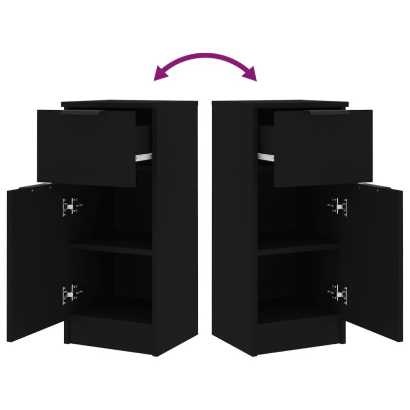 Странични шкафове, 2 бр, черни, 30x30x70 см, инженерно дърво