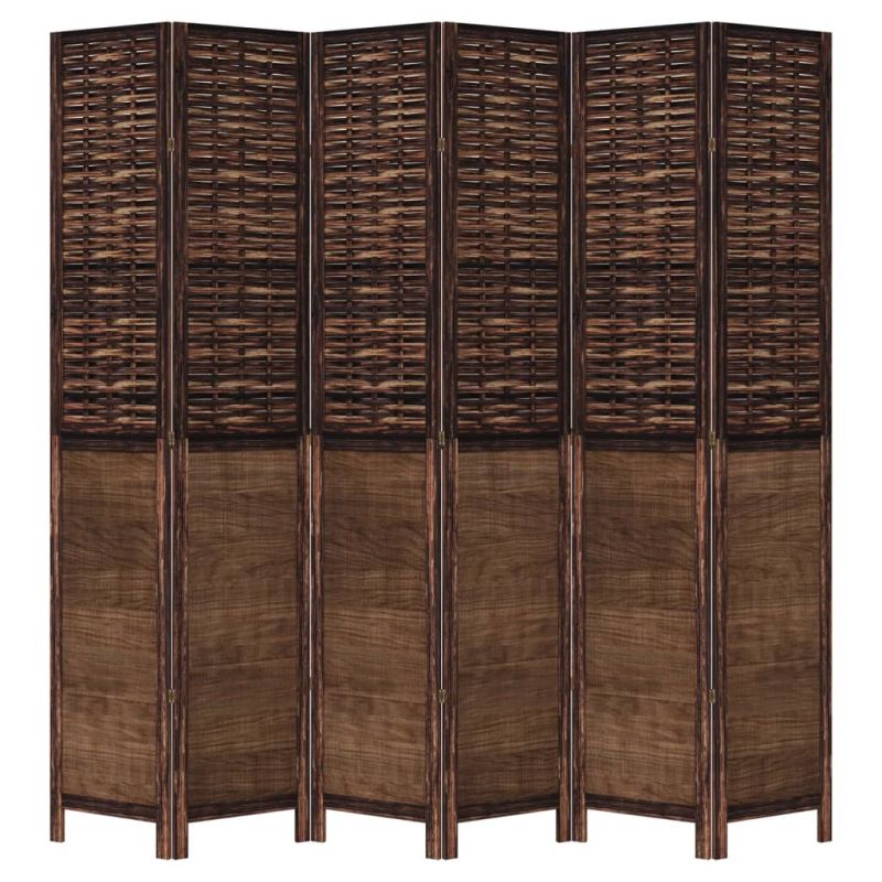Разделител за стая, 6 панела, тъмнокафяв, дърво пауловния масив