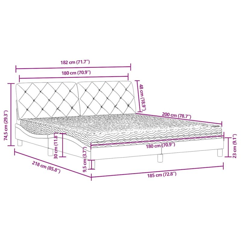 • Габаритни размери: 218 x 185 x 74,5 см (Д x Ш x В)