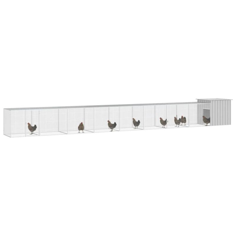 Тази клетка за кокошки от поцинкована стомана може да осигури комфорт и безопасност на вашите кокошки, патици и други малки животни. Всичко в едно място за кокошарник: Кокошарникът предлага множество приложения: почивка, игра, упражнения или просто за безопасност на вашите малки животни. Той ще бъде перфектен рай за вашите кокошки!Здрава конструкция: Благодарение на здравата конструкция от поцинкована стомана, кокошарникът е издръжлив и построен за дълготрайност.Допълнителна сигурност: Вратата с панти и заключваща се система за заключване на кокошарника осигурява допълнителна сигурност и безопасност за вашите животни.Вентилиран дизайн: Кокошарникът е с мрежест дизайн, което го прави добре вентилиран, за да поддържа въздуха свеж и чист. Така че, външният кокошарник е полезен за здравето на вашите малки приятели.Разширение: С включената разширителна клетка можете лесно да създадете просторно жилищно пространство, където вашите домашни любимци да играят и почиват свободно в рамките на границите. Забележка:Всеки продукт се предлага с ръководство за монтаж в кутията за лесно сглобяване.Полезно е да знаете:За да предотвратите повреди от обилно натрупване на сняг, препоръчваме редовно да почиствате покрива през зимата. Предупреждение! Трябва да носите защитни ръкавици. Моля, носете предпазни очила, ръкавици, предпазни обувки и каска (защита на главата), когато монтирате продукта. Не инсталирайте продукта при екстремни метеорологични условия, като силен вятър или ниски температури. Не допускайте деца и домашни любимци в зоната за монтаж. Продуктът трябва да се монтира върху равна повърхност.