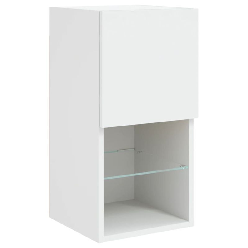 ТВ стенни модули с LED, 6 части, бели, инженерно дърво