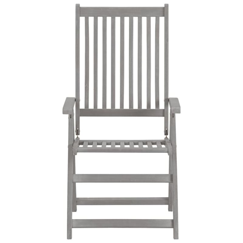Този модерен градински стол с възглавници ще повиши комфорта на вашето открито пространство! Тези кресла са изработени от акациево дърво масив с финиш в промито сиво – твърда дървесина с плътни шарки. Тези красиво проектирани градински столове са стабилни, издръжливи и привличащи вниманието. Облегалката на стола може да се регулира в 5 настройки на наклон, така че винаги можете да зададете най-удобната позиция според предпочитанията си. Нещо повече, включените възглавници осигуряват допълнителен комфорт, докато се отпускате. Изработена е от 100% полиестер, който е обработен, за да стане водоустойчив, всяка възглавница има ластична връзка и два комплекта въжета, за да я фиксирате плътно върху стола. Тези дървени столове са идеални за хранене със семейството ви или просто да се насладите на времето във вашата градина. Максимално 110 кг на седалка.