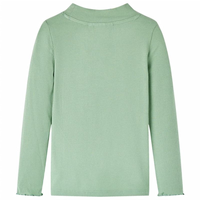 Нашата линия за детски дрехи е за достъпни, висококачествени и издръжливи ежедневни облекла за деца на възраст от 1,5 до 10 години. Нашата гама включва якета, пуловери, ризи и много други, с разнообразие от стилове, размери и цветове. Следвайки стандарта за високо качество на пазара, ние използваме висококачествени материали и усъвършенствани производствени техники. Тази детска тениска е с дълги ръкави, ниска яка и прилепнала кройка. Тази тениска в цвят тъмна мента има маншети с кант на вълнички. Детската тениска с дълъг ръкав е изработена от мека материя с 95% памук и 5% еластан, осигуряваща допълнителен комфорт и разтегливост. Добре е да знаете: Таблицата с размери на снимката предоставя размери за деца на възраст от 1,5 до 10 години, покриващи височина, гърди, талия и ханш. Лесно можете да намерите подходящата за вашето дете.