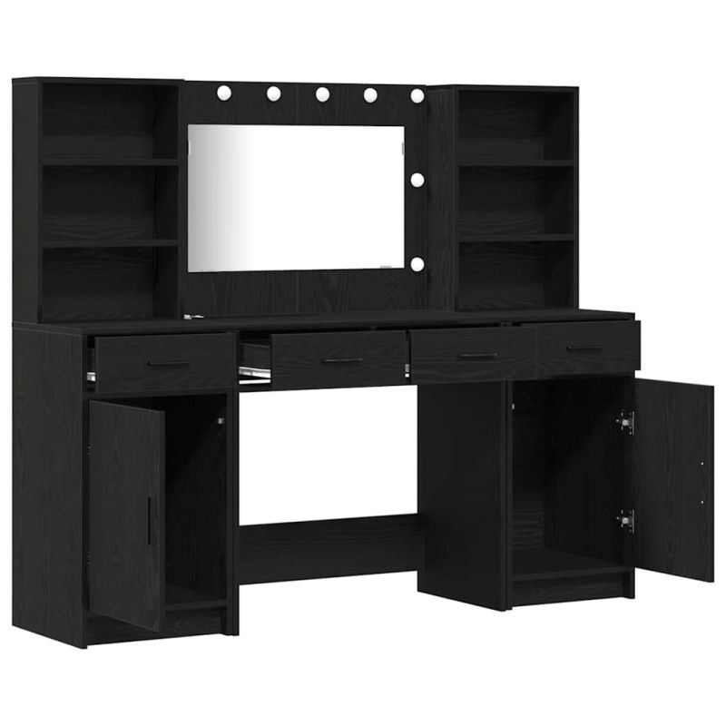 Този комплект за тоалетка е стилно допълнение към всяка спалня, съчетавайки мода и практичност. С размери 135 см височина и различна ширина и дълбочина, той е идеален за всяко пространство. Изработен от инженерно дърво за дълготрайност. Със своя чист и минималистичен дизайн, допълва различни интериорни стилове. Без значение дали се готвите за събитие или организирате вещите си, този комплект е идеален избор за елегантност и удобство. Конструкция от инженерно дърво Осигурява стабилна основа и дълготрайност. Издръжлив и устойчив на деформации, с гладко покритие, което му придава естетически вид. Акрилно огледало Устойчиво на счупване и по-леко от стъклените варианти. Проектирано за безопасност, осигурява висока яснота и остри отражения. Складова система с рафтове и чекмеджета Осигурява множество решения за съхранение. Улеснява организирането на козметични продукти, като спомага за чистота в пространството. LED осветление с натискане на бутон Предоставя ясна видимост, идеално за гримиране. Удобно включване с натискане на бутон, акцентира на функционалността на комплекта. Универсален модерен стил Лесно се вписва в разнообразни декори на спалнята. С чисти линии и прост дизайн, комбинира елегантност с полезност. Моля, обърнете внимание, че трябва да използвате само сертифициран вход DC 5V. По-високото напрежение може да доведе до прегряване и да повреди устройството, както и до потенциален риск от прегряване и пожар. Не свързвайте този продукт към захранване, различно от описаното в ръководството, на табелката с името или изрично препоръчано от vidaXL. Този уред не трябва да се използва от деца под 15 години, както и от лица с намалени физически, сетивни или умствени способности или с липса на опит и познания относно използването на електронни уреди. Електричеството е опасно. Повредите и неправилният монтаж, употреба или промяна (подмяна на отделни компоненти) могат да доведат до повреда на уреда , което да доведе до токов удар и опасност за потребителя. Не използвайте този продукт във взривоопасна атмосфера, като например при наличие на запалими течности, газове и прах, или при температура над 50 градуса по Целзий или повече. Не включвайте продукта, ако свързващият кабел или захранването са видимо повредени. Ако външният гъвкав кабел или захранващ кабел на това осветително тяло е повреден, той трябва да бъде заменен изключително от производителя или негов сервизен агент, или от подобно квалифицирано лице, за да се избегне опасност. Изключете захранването по време на монтажа и поддръжката. Уверете се, че крушките са изстинали. Светлинният източник на това осветително тяло не може да се заменя; когато светлинният източник достигне края на експлоатационния си срок, цялото осветително тяло трябва да се замени. Само за употреба на закрито, не използвайте този продукт на открито.
