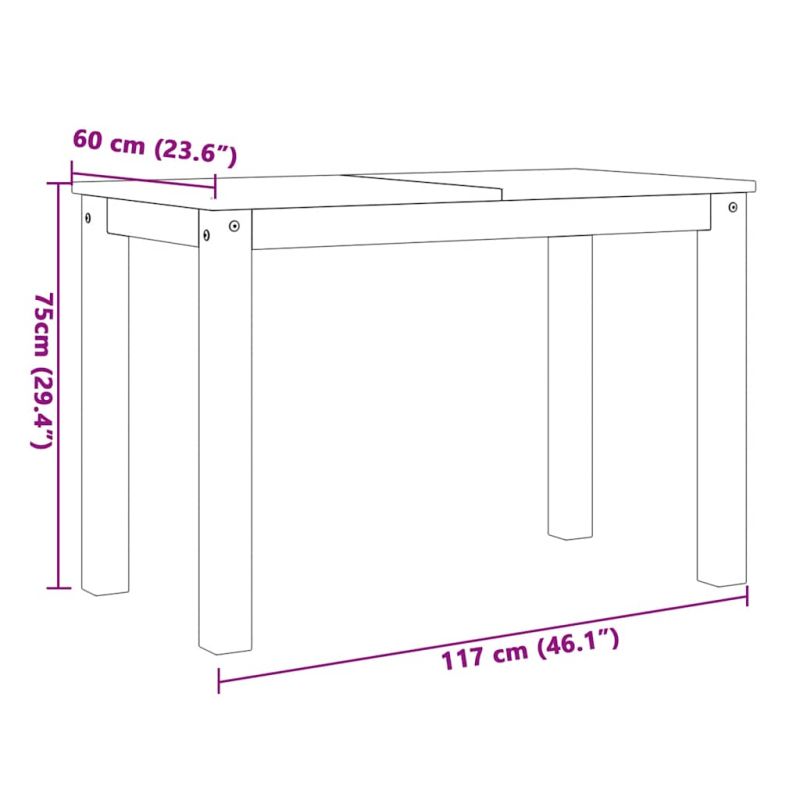 • Размери на масата: 117 x 60 x 75 cм (Д x Ш x В)