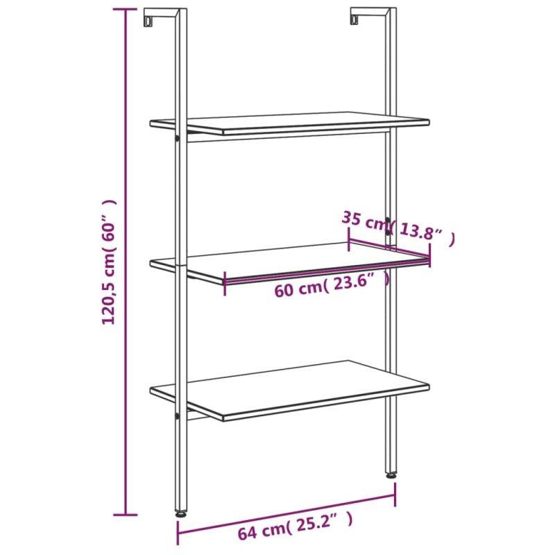 Етажерка стълба с 3 рафта светлокафяво и черно 64x35x120,5 см