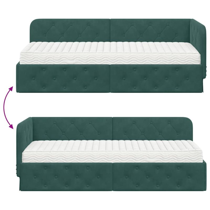Ъглова рамка за легло Тъмен зелен 80 x 200 cm Кадифе