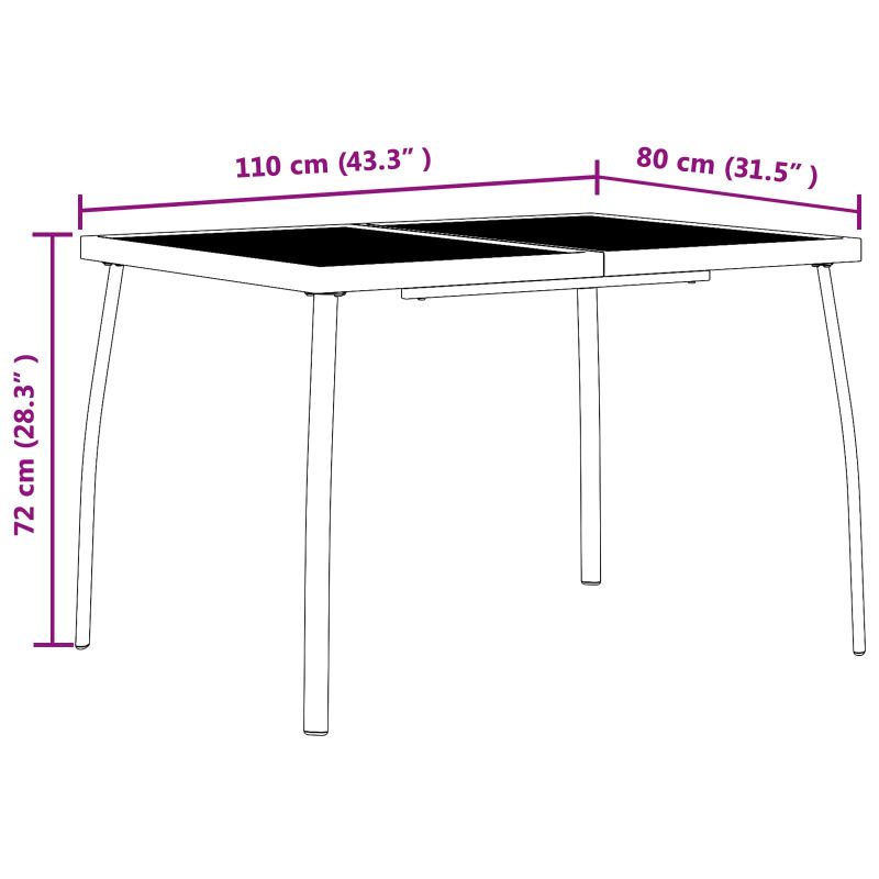Този модерен градински комплект е стилен и практичен, идеален за релаксация и социализиране на открито. С прахово боядисан корпус, дизайнът е минималистичен и се вписва чудесно в всяка съвременна обстановка. С елегантния си антрацитен тон и чисти линии, комплектът придава изисканост и уют за събирания или просто спокойни мигове навън. Трайни материали Този комплект мебели е изработен от стомана, така че е здрав и готов за всякакво време. Осигурява стабилност и дълготрайност. Мешест плот Масата е с мрежеста повърхност, която позволява въздух и предотвратява натрупване на вода. Лесна е за почистване и идеална за ежедневна употреба навън. Сгъваеми столчета Леките столчета се сгъват лесно за удобно съхранение. Просто се разпаковат и спестяват място, когато не се ползват. Прахово боядисан корпус Стоманената рамка има прахово покритие за дълготрайност в променящи се условия. Поддържа постоянния си вид и при редовна употреба. Лесна поддръжка Просто чистиш повърхностите с влажна кърпа, за да махнеш праха и мръсотията. Материалите са с ниска поддръжка за открито.