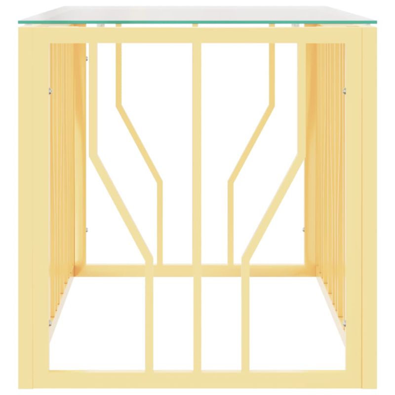 Комбинирайки функционалност и красота, тази масичка за кафе ще бъде централната точка на вашата стая. Издръжлив материал: Неръждаемата стомана е здрава и издръжлива за дългосрочна употреба. Освен това има добра устойчивост на корозия и ръжда.Гладък плот на масата: Гладкият стъклен плот се почиства лесно с влажна кърпа и е идеален за поставяне на храна, напитки и различни декоративни предмети.Широки приложения: Тази странична маса може да се използва като маса до диван, крайна маса или холна маса.