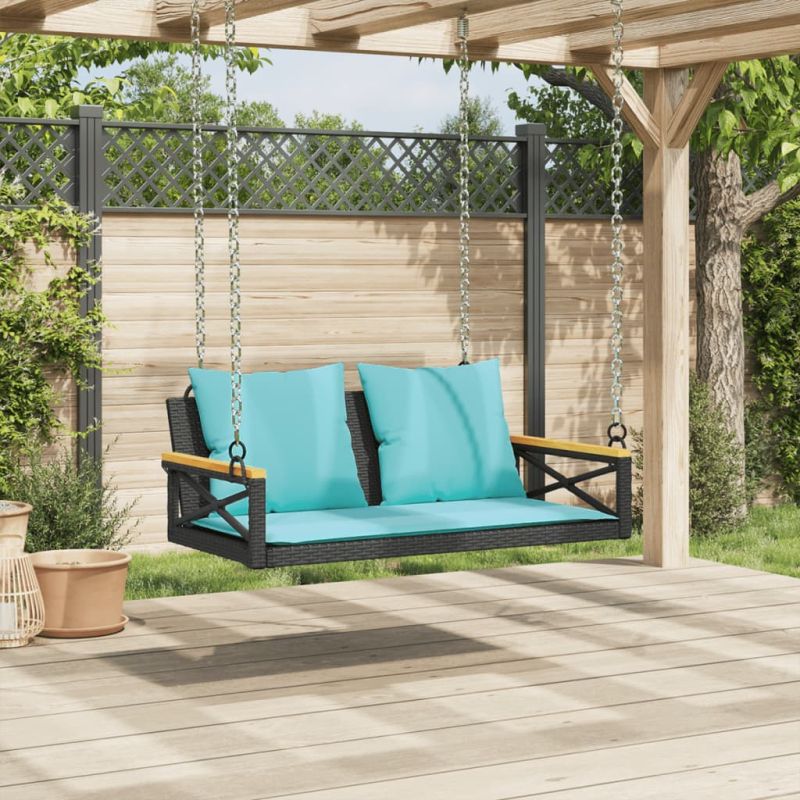 Пейка-люлка с възглавници, черна, 109x62x40 см, полиратан