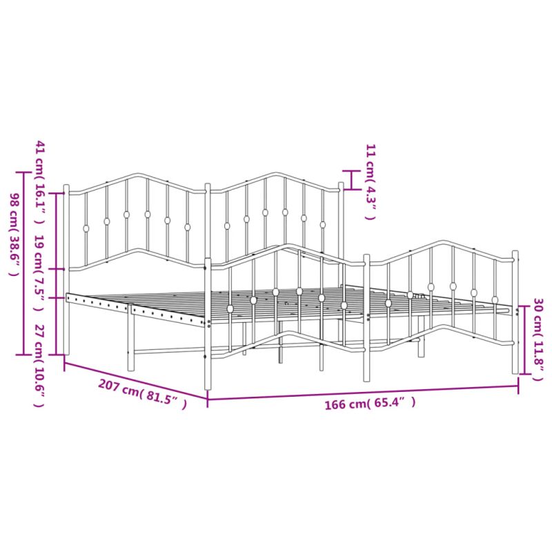 Метална рамка за легло с горна и долна табла, бяла, 160x200 см