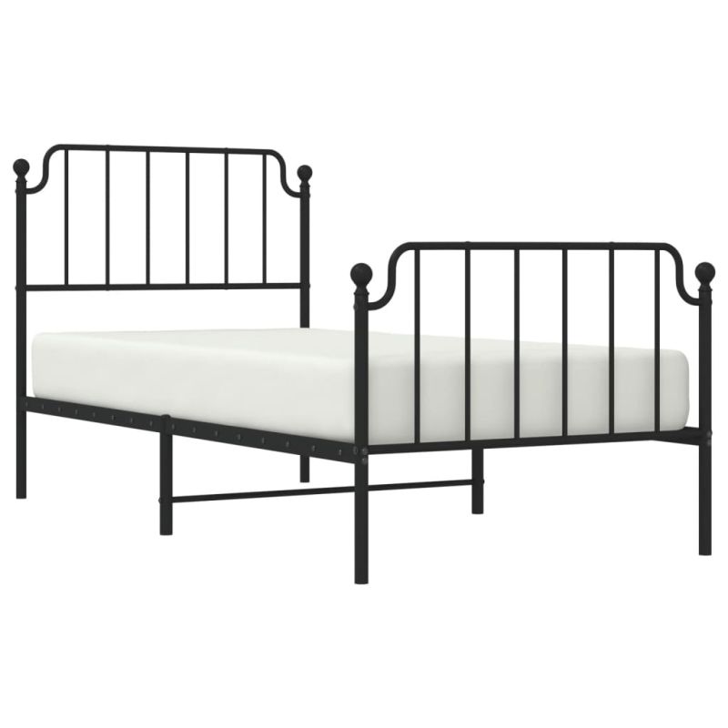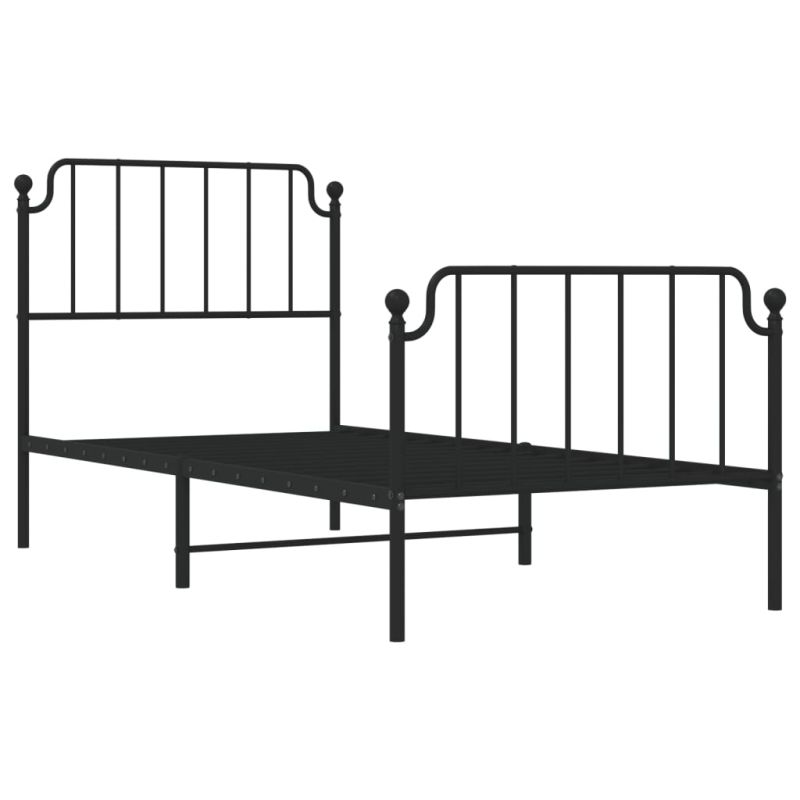 Метална рамка за легло с горна и долна табла, черна, 90x200 см