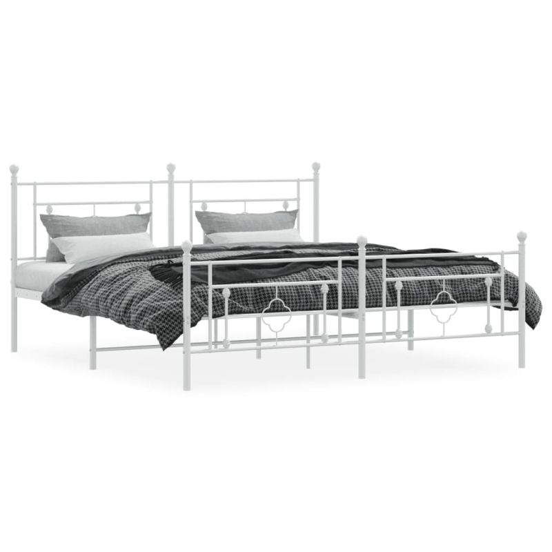 Метална рамка за легло с горна и долна табла, бяла, 180x200 см