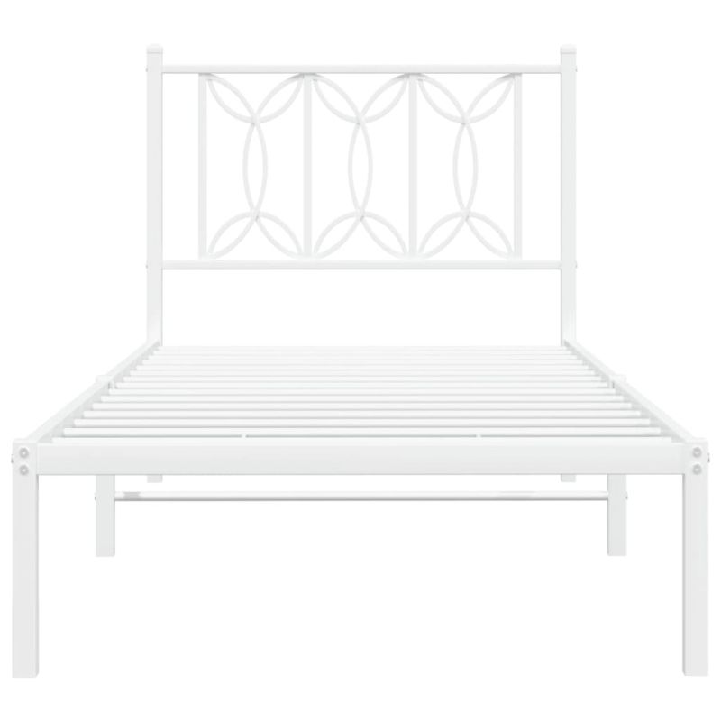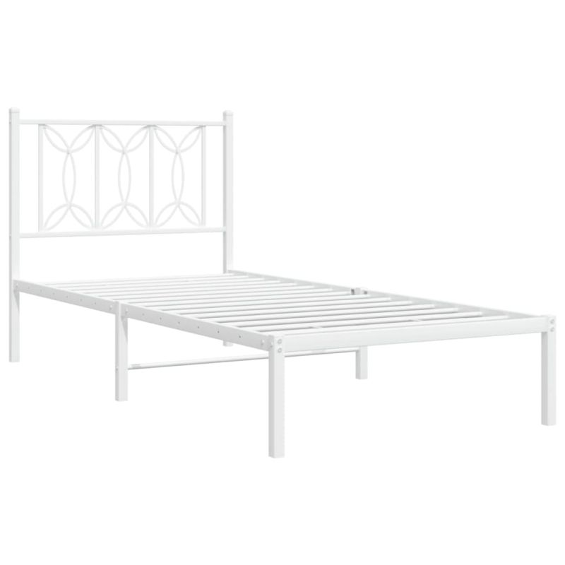 Метална рамка за легло, без матрак, с табла, бяла, 75x190 см