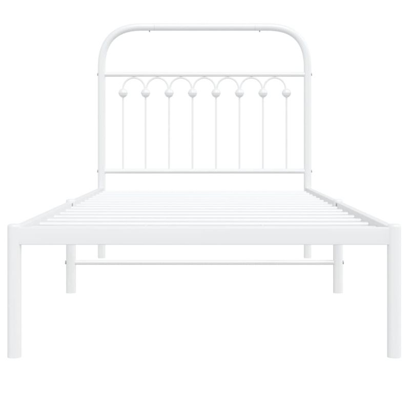 Метална рамка за легло с горна табла, бяла, 90x200 см