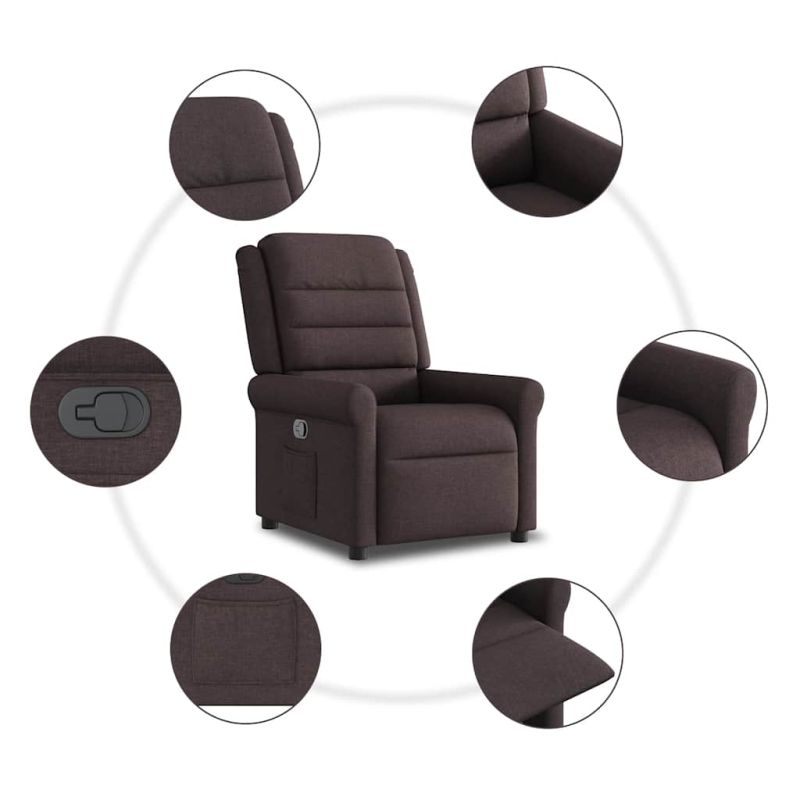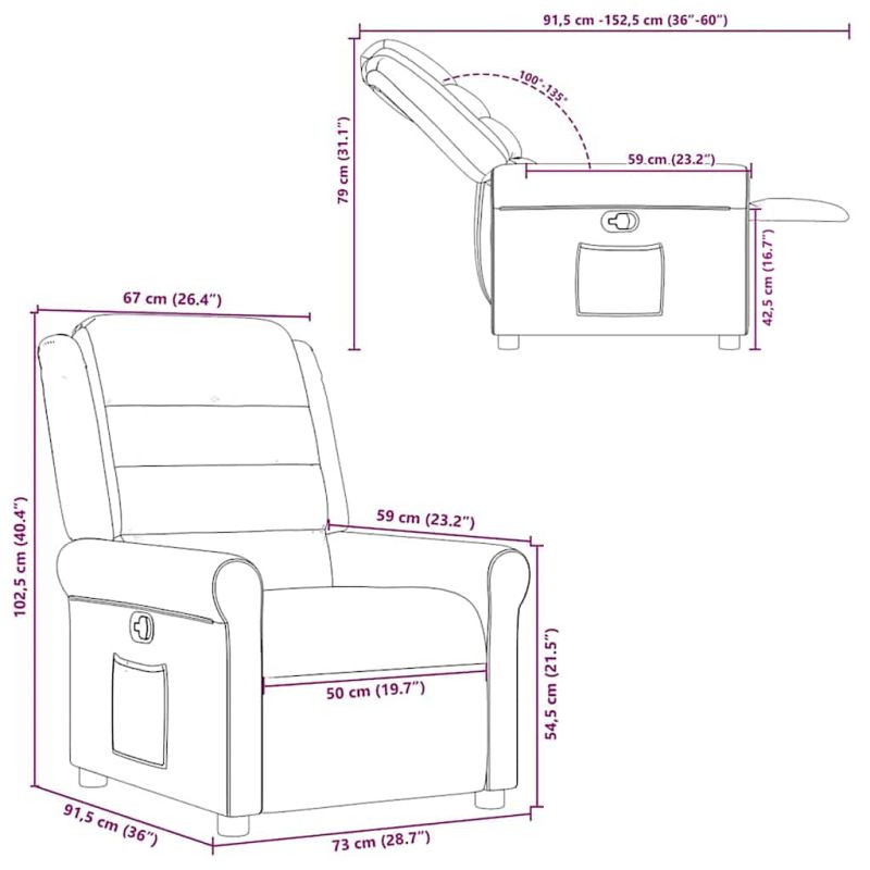 Облегнете се и се отпуснете в този изключително комфортен наклоняем стол! Функция за ръчно накланяне: Този накланящ се стол има дръжка от дясната страна. Можете ръчно да настроите поставката за крака и облегалката до произволна позиция според вашето удобство с просто издърпване на дръжката. Тази функция позволява максимален наклон от 135 градуса. Освен това облегалката може бързо да се върне на първоначалното си място с лесно издърпване на дръжката.Удобно седене: Дебело подплатената седалка, облегалката и широките подлакътници, покрити с текстил, осигуряват уютно и топло усещане, което ви кара да се чувствате като в прегръдка, докато седите. Тъканта се отличава със семпъл и изчистен вид и е дишаща и издръжлива.Удобен страничен джоб: Този фотьойл има страничен джоб за вашето дистанционно управление или за поддържане на вашите основни вещи леснодостъпни.Здрава и стабилна рамка: Рамката, изработена от дърво и метал, осигурява здрава структура и стабилност. Този накланящ се фотьойл е удобен и издръжлив.