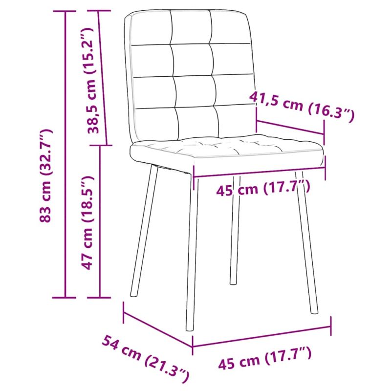 Тези трапезни столове съчетават семпъл стил и комфорт с елегантния си дизайн, което ще ги превърне в акцента на вашето жилищно пространство. Мек и удобен материал: Кадифената материя се отличава с мека и гладка повърхност, която създава приятно усещане върху кожата, като ви носи топлина и максимален комфорт.Здрава и стабилна рамка: Столът за хранене се поддържа от метал и дърво, което осигурява допълнителна издръжливост и стабилност.Удобно седене: Седалката и облегалката на седалката за хранене са изпълнени с плътна пяна, за да ви осигурят комфорт.Широки приложения: Столът може да се използва в трапезарията, хола, стаята за гости и т.н. според нуждите ви.